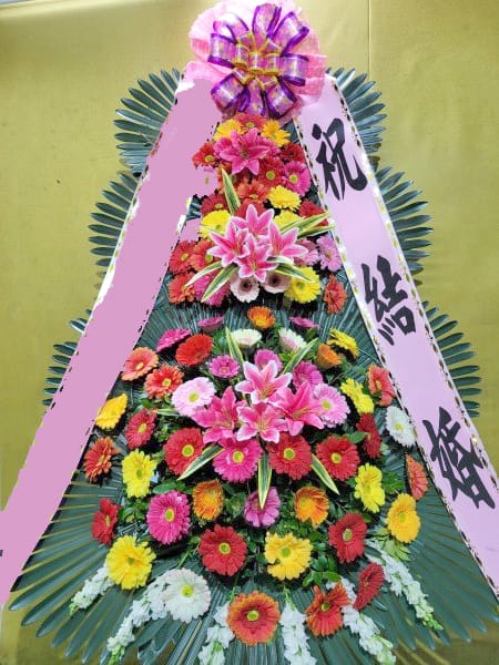 탁구회원분의 결혼을 축하하기 위한 3단화환